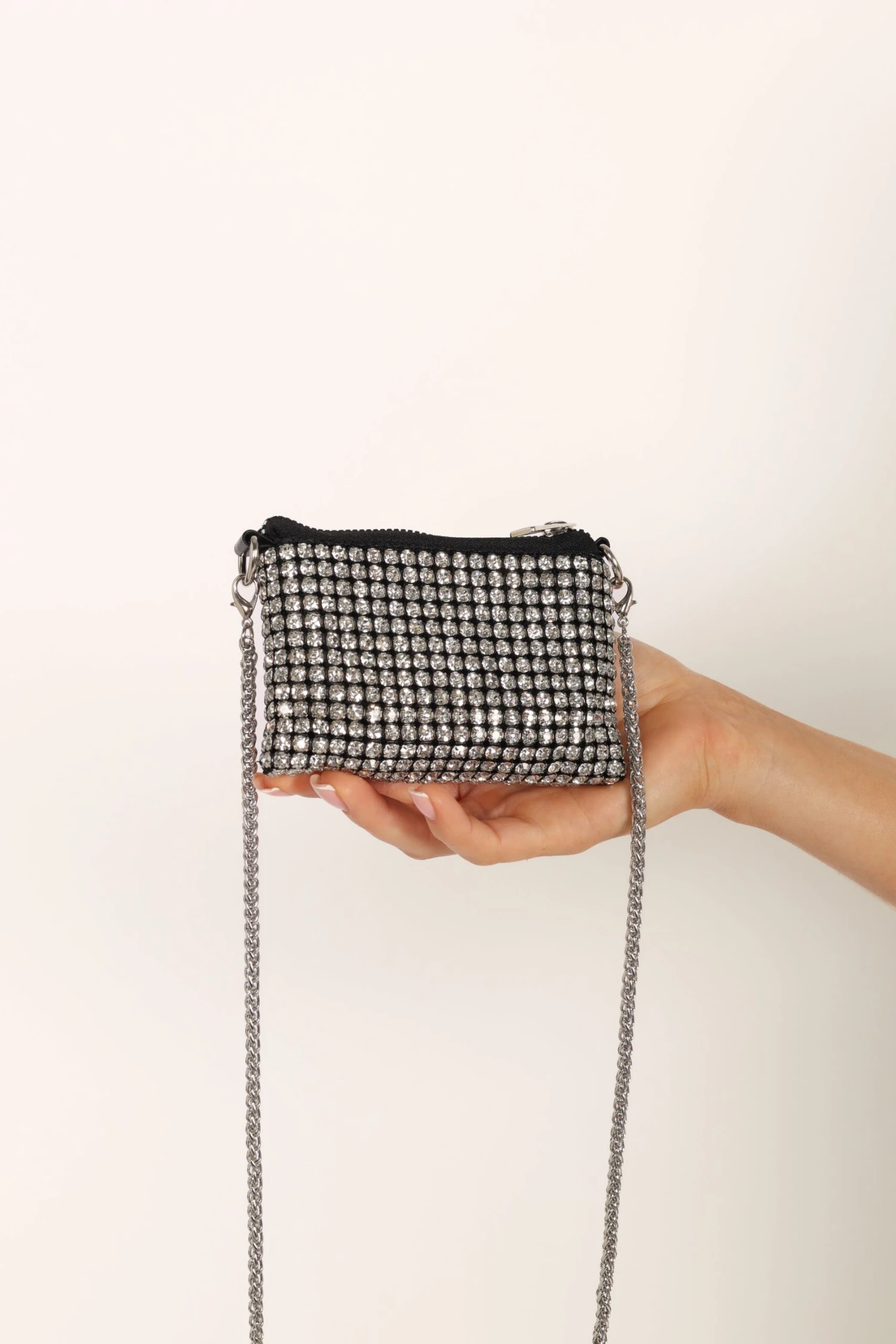 | DETAILS Make a statement on your next date night with this stunning Rhinestone Black Cross Body Bag. With its detachable non-adjustable cross body chain strap, you’ll feel comfortable and confident all night.
