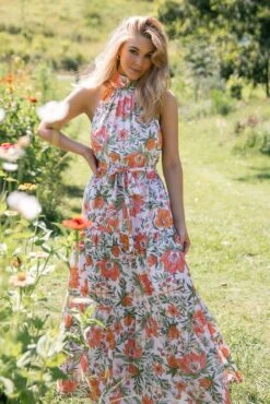 | DETAILS Look your best in this beautiful maxi dress! Featuring a high round neckline with button close, a back neck opening with button close, an elasticised waistband, belt loops and detachable waist tie, this dress is sure to be a figure-flattering favorite.