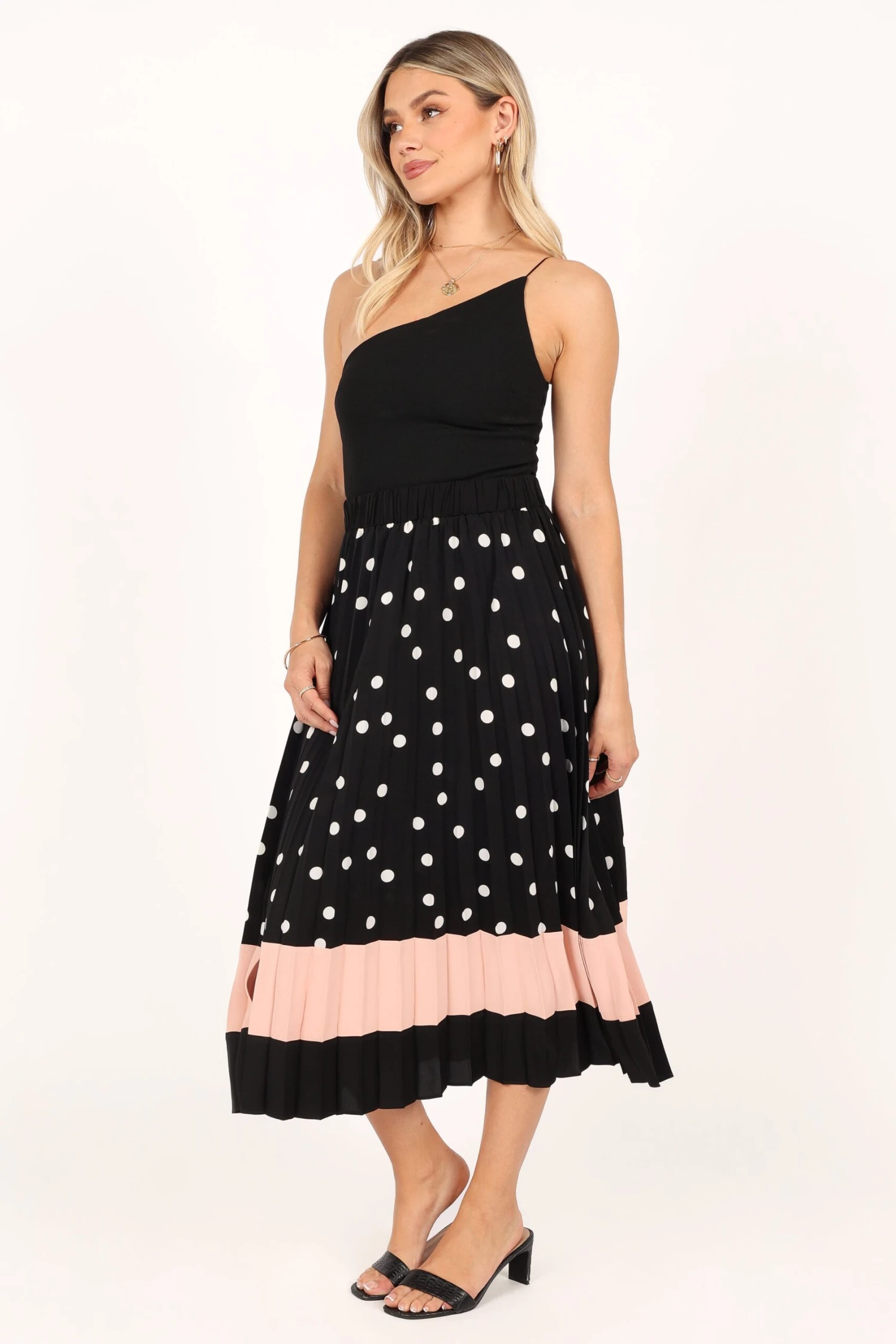 | DETAILS Do you have a party coming up and looking for a fun outfit? Look no further than our midi length skirt with an elastic waistband! Not only is it comfortable and easy to wear, but its pleated detail gives it a stylish touch.