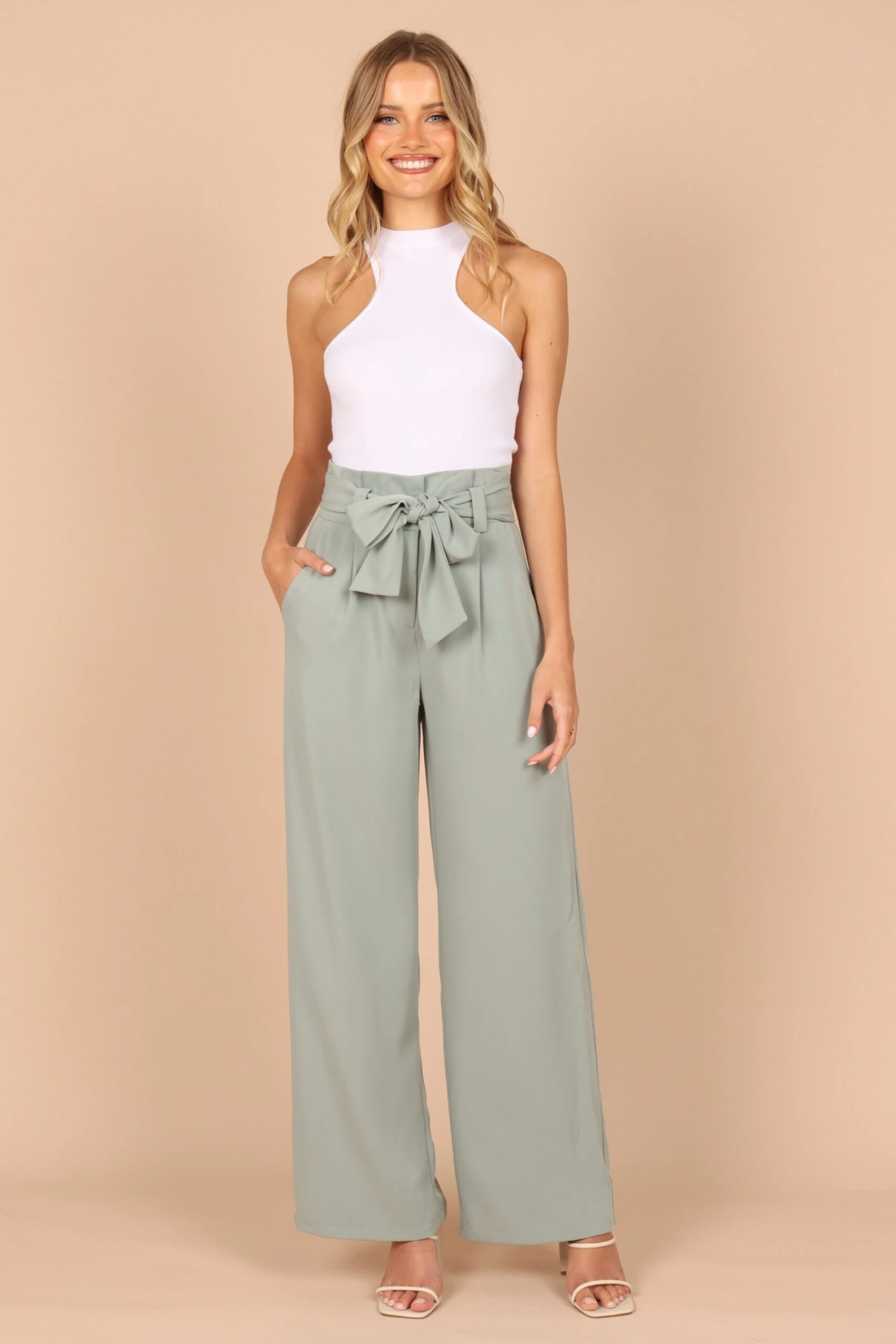 | DETAILS Step into timeless sophistication with our stylish Wide Leg Pant! The high-waisted design and gathered pleated waistband give you a flattering silhouette that’s perfect for any occasion.