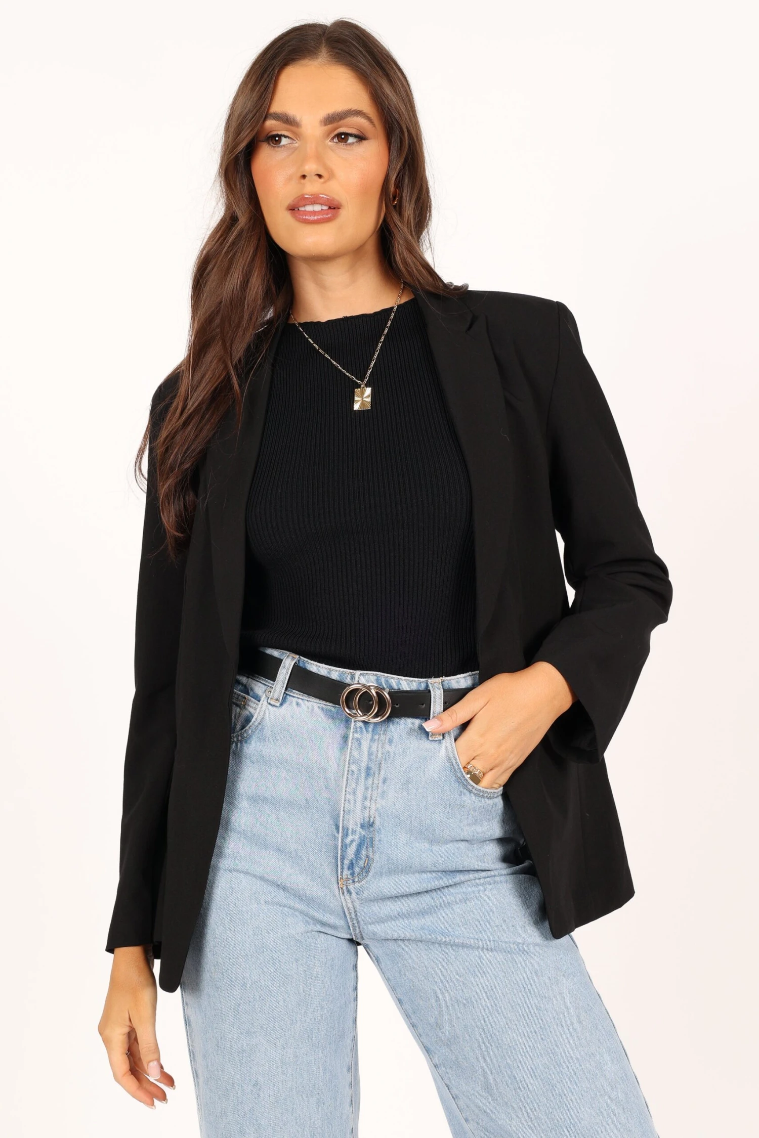 | DETAILS The open front style blazer is a staple for any wardrobe. With its classic collar and lapels, long sleeves and non functional pockets, you can take this piece from day to night with ease.