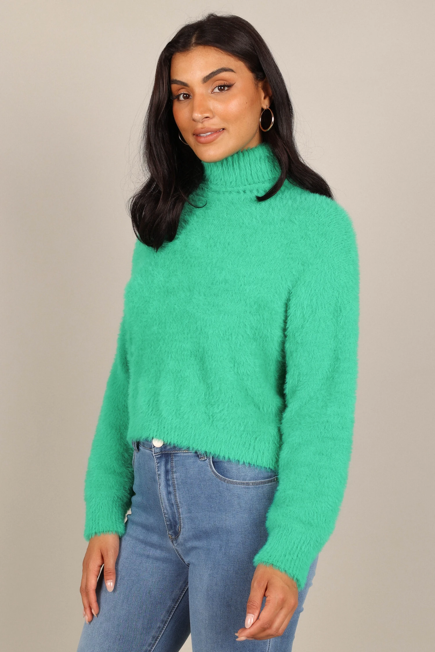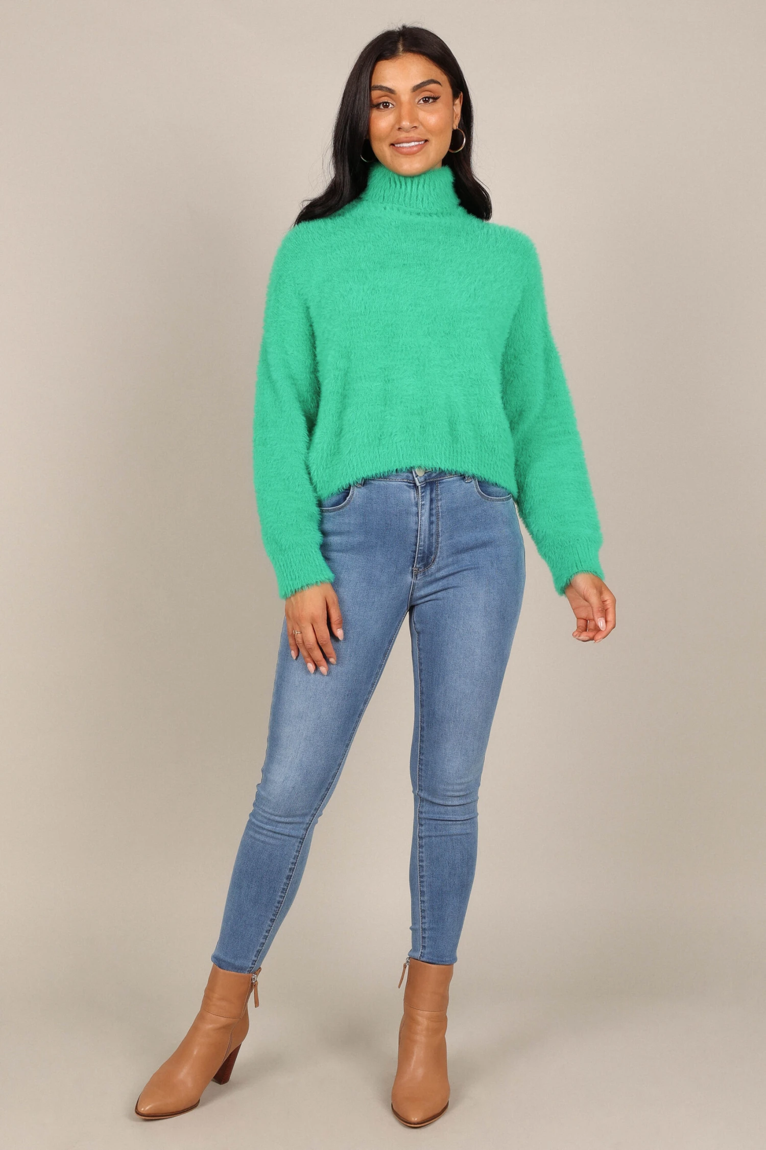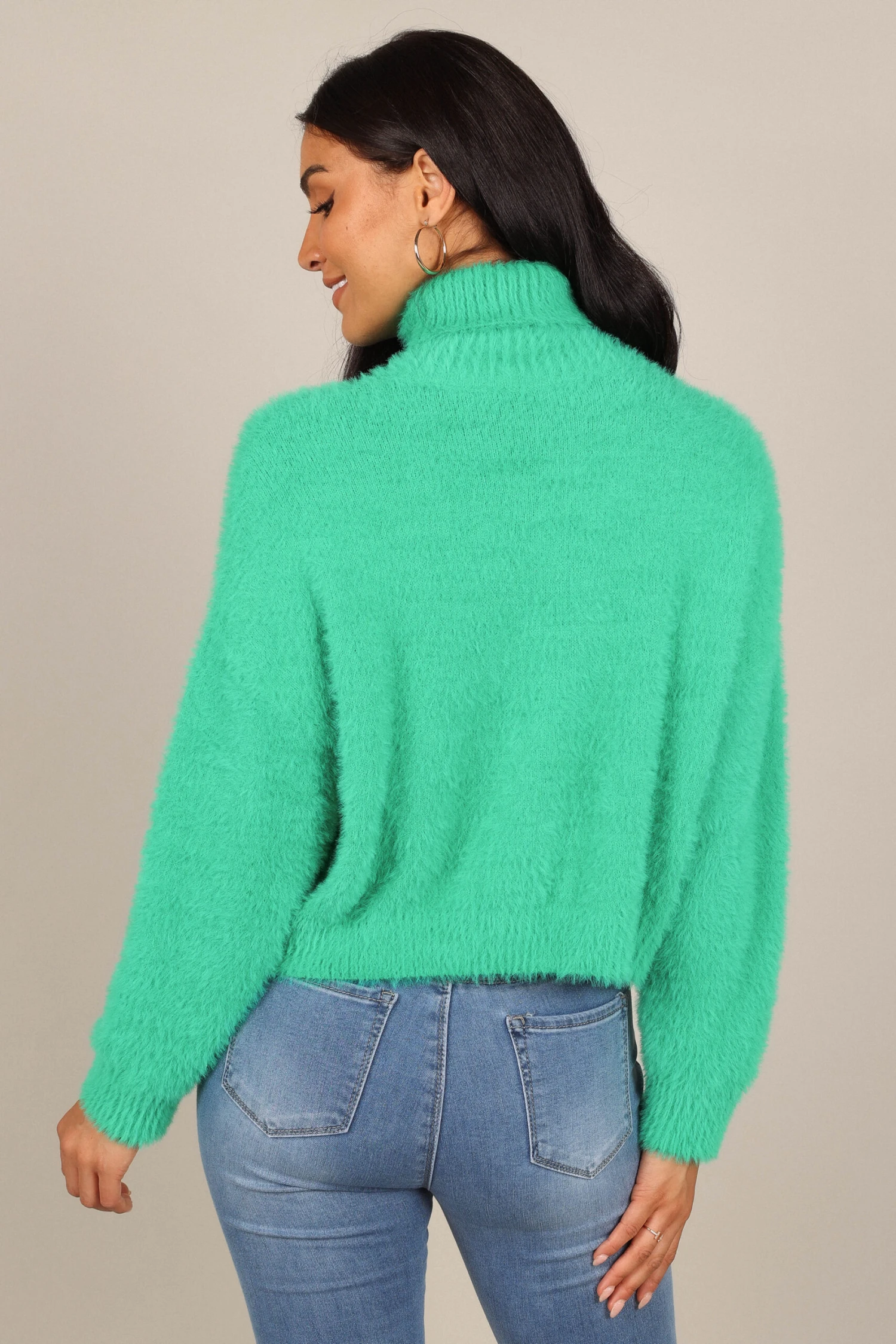 Monica Fuzzy Turtleneck Knit Sweater – Green