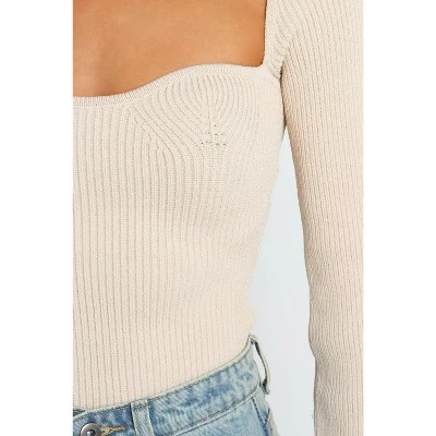 Say hello to your perfect knitwear match. It’s long sleeve sweetheart neckline is the perfect sweater for all occasions. Crafted from a stretchy ribbed knit fabric, you’ll be sure to feel comfortable and confident in this flattering design.