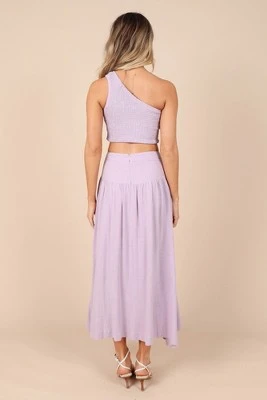 This shirred, one shoulder crop top is the perfect way to show off your style. With its cropped length and shirred body, this top will hug your curves in all the right places. Make a statement by wearing it with high waisted jeans or skirts for a, fun look.