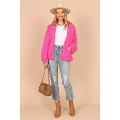 Stay cozy and stylish with this cardigan knitwear! This open front cardigan boasts a delicate hand-knitted look, long sleeves, functional front pockets and an oversized fit for maximum comfort. It’s the perfect piece to add some effortless feminine vibes to your wardrobe – team it with skinny jeans and heeled boots for an on-trend look.
