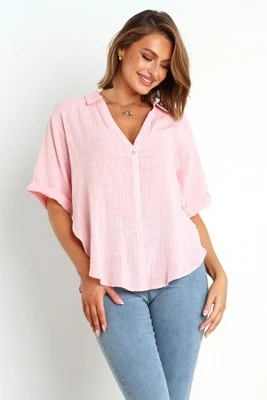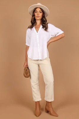 Look and feel your best in this collared top! With short sleeves, a v neckline, and functional buttons down the front, you can take on the day with ease and style. The curved hem adds an extra touch of fun to complete the look.