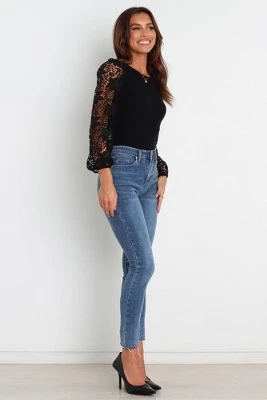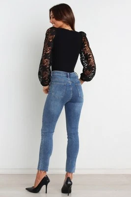 If lace is your thing, then this round neckline top is totally made for you! With long lace sleeves and a stretch ribbed knit body, it’s perfect for dressing up or down. Go from day to night in style with this must-have piece – you won’t be disappointed!