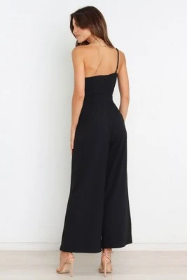 This one shoulder jumpsuit is a classic wardrobe staple perfect for any occasion. Featuring an adjustable thin strap and back invisible zip, you’ll be sure to leave a lasting impression! The jumpsuit also includes belt loops and a detachable waist tie for added shape and style.