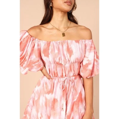Are you ready to party? Step out in style in this off shoulder mini dress. With a super cute elasticised neckline, short sleeves with elasticised cuffs and belt loops for your favourite accessories, it’s perfect for any special occasion.