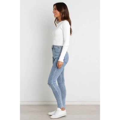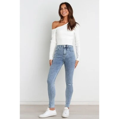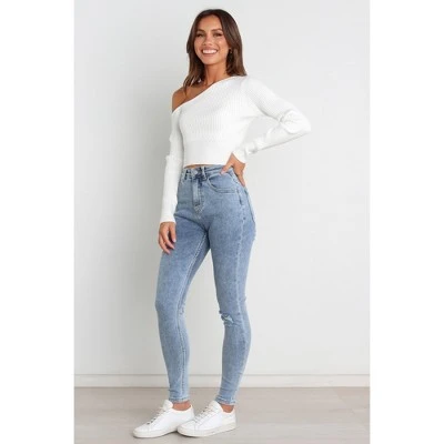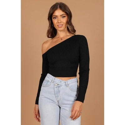 Are you looking for one top that can take you from day to night? Look no further than this one shoulder knit top! Its cropped length, long ribbed sleeves, and ribbed hemline give it a fun look.