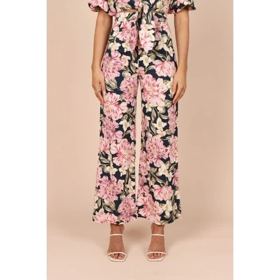 Take your party look to the next level with these stunning floral pants! The wide leg style and high waisted design make them perfect for a night out on the town. The back invisible zip with hook and eye clasp makes it easy to slip in and out of this stylish piece.