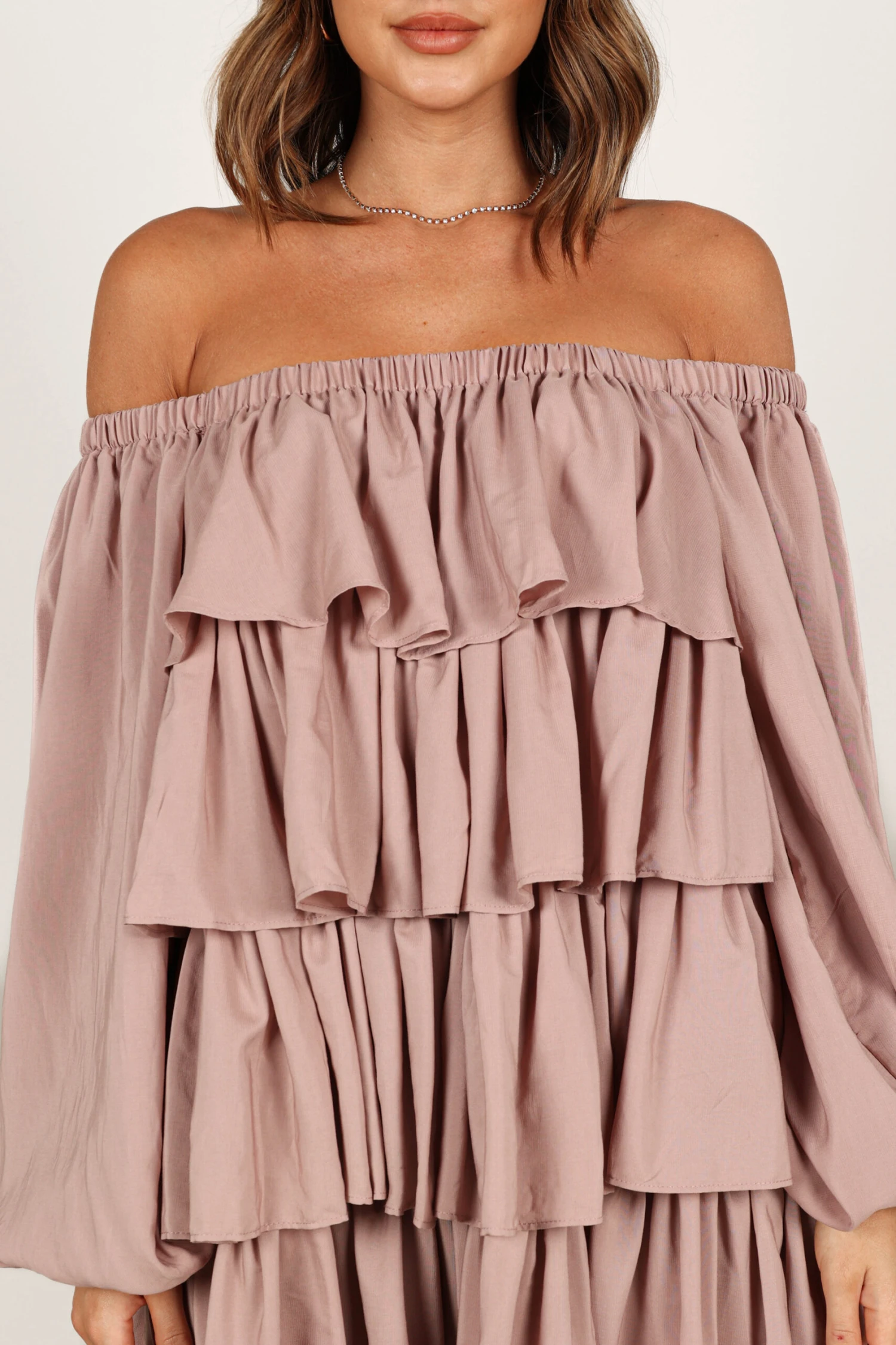 | DETAILS Are you ready to turn heads? This mini off shoulder dress is just the thing for you! With its tiered ruffle design and elasticised straight neckline, this mini dress will have everyone swooning.